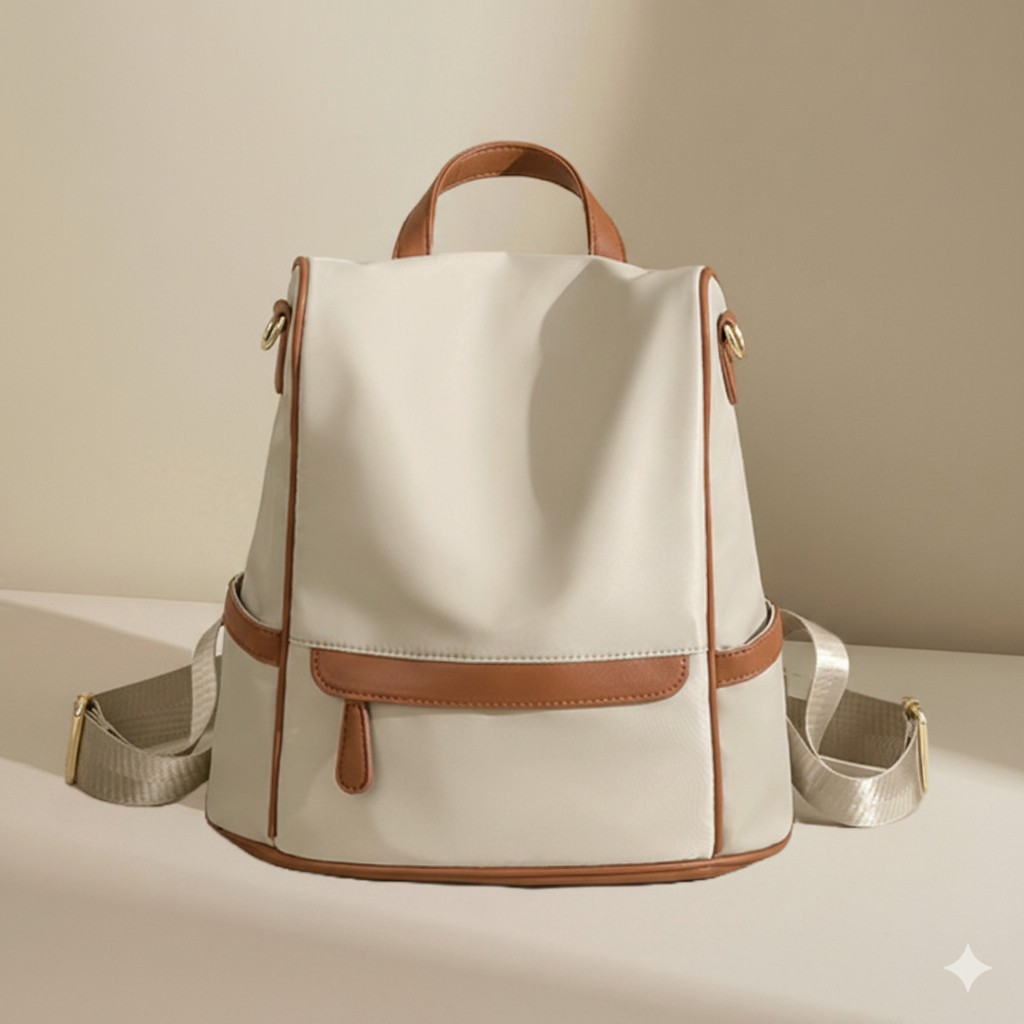 New Design Women Backpack Nylon Waterproof Anti-Theft Travel Bagpack(Apricot) - 1038